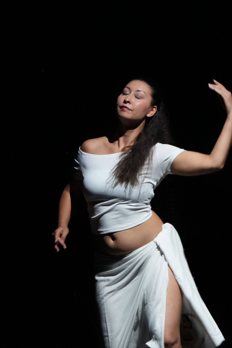 Dramatic photos of a colourful performance in a dark matchbox theatre